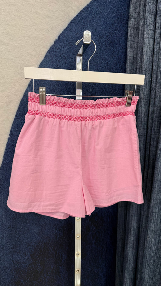 Smocked Contrast Top & Short Set Pink