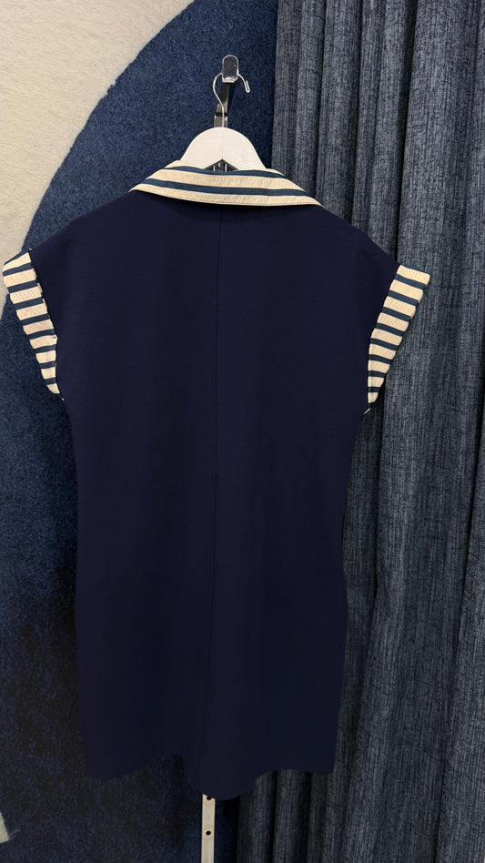 Knit Contrast Dress Navy