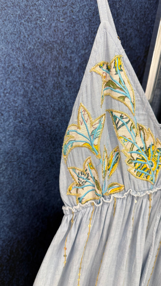 Maxi Dress Embroidery & Sequins Accents Blue