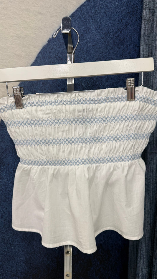 Smocked Contrast Top & Short Set White / Blue