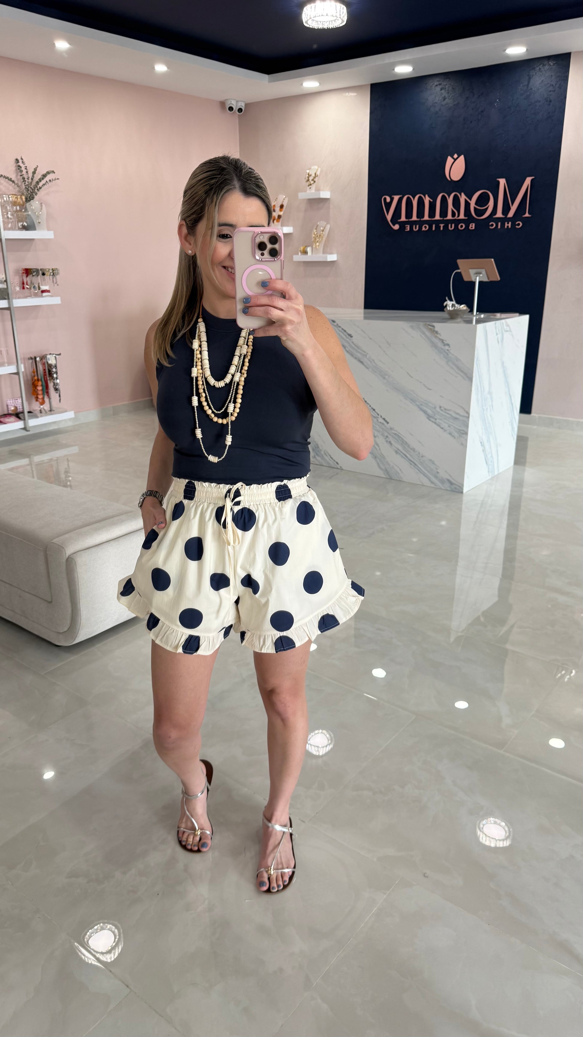 Polka Dot Ruffle Short Navy