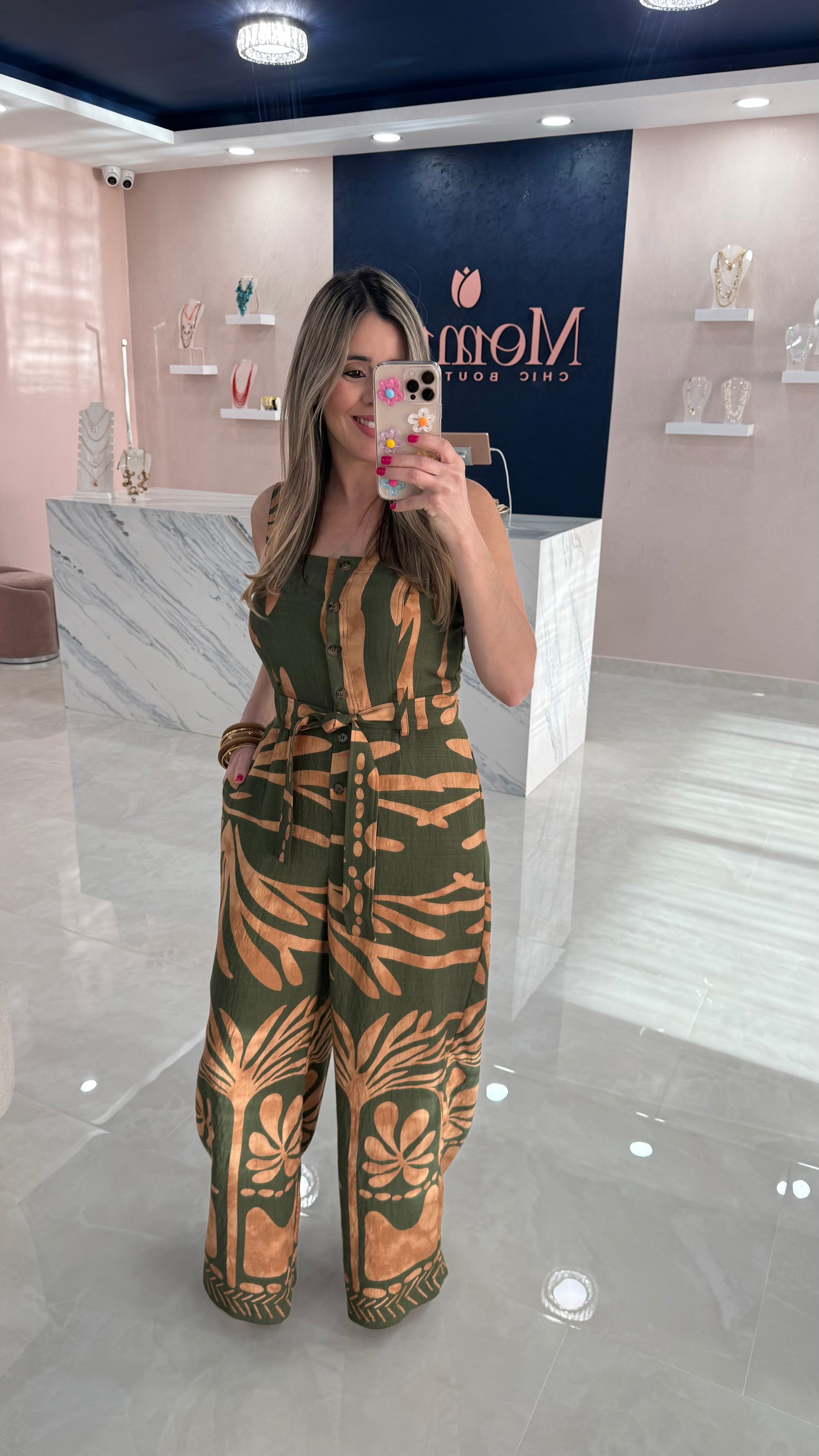 Printer Olive & Camel Jumpsuit