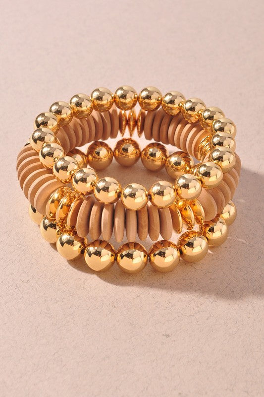 Wood & Bead Elastic Bracelet